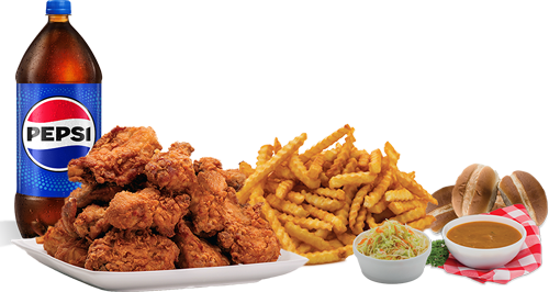 12 Pieces of Chicken - X-Large Fries - Large Gravy - Large Salad - 5 Dinner Rolls - 2L Pepsi Product